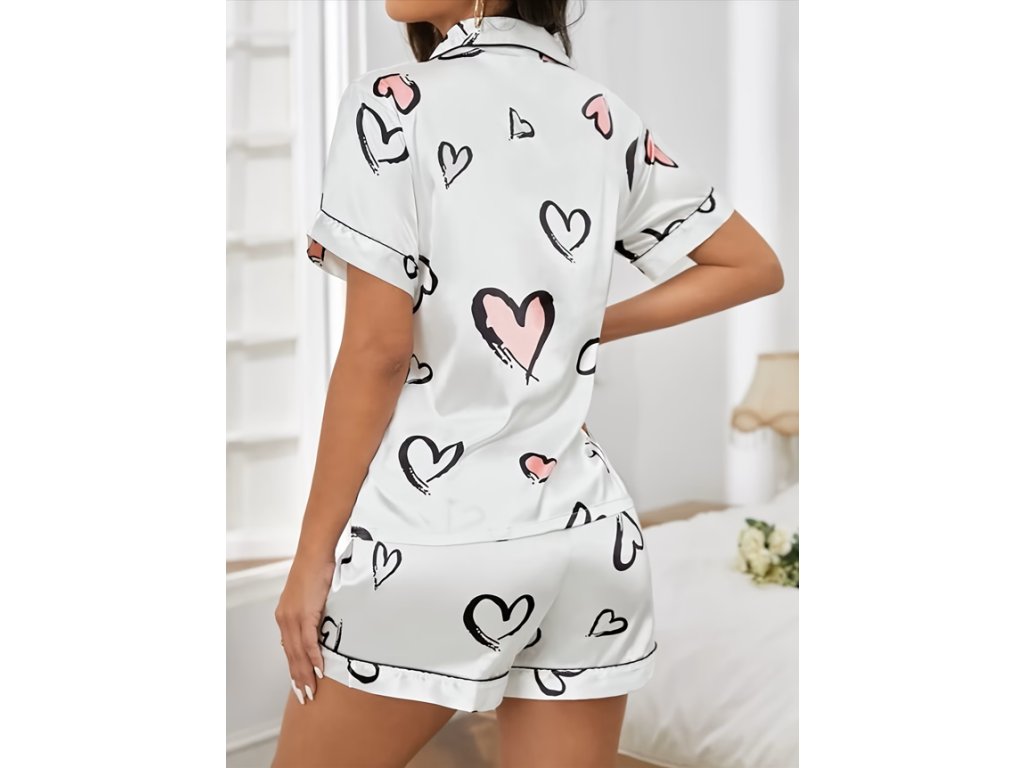 Dámské bílé pyžamo se srdíčky