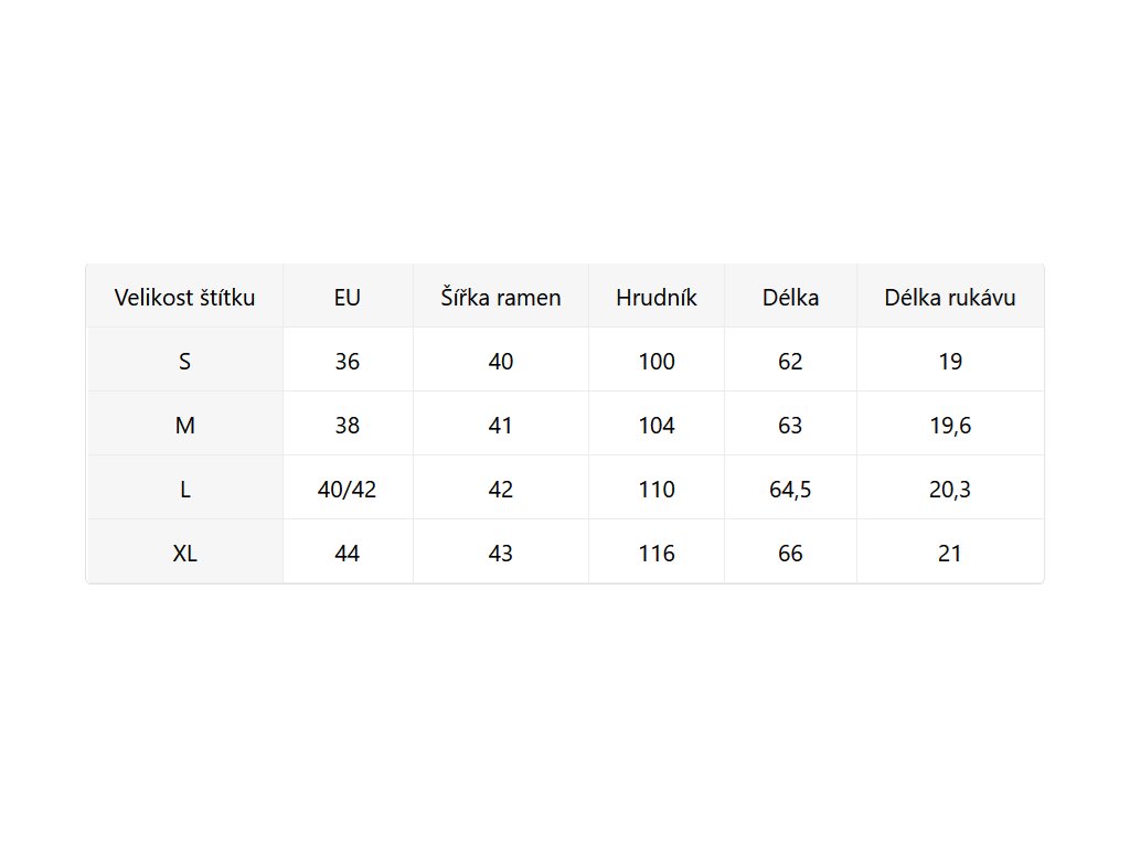 - Velikostní tabulka u fotek produktu