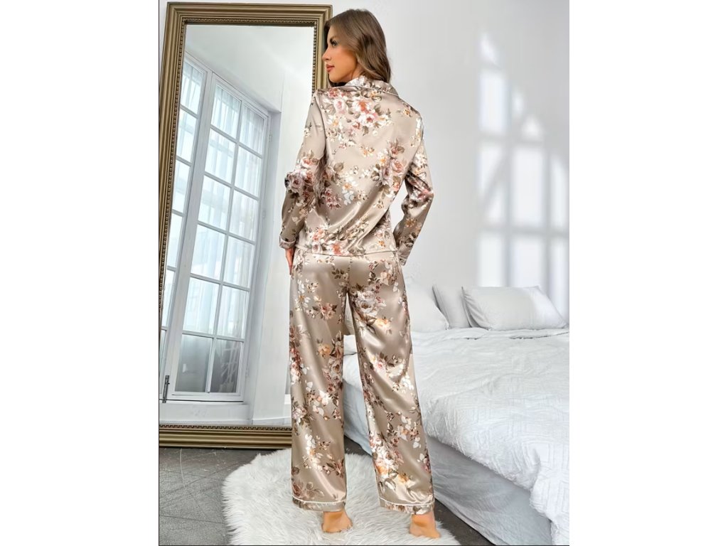 Dámské hnědé pyžamo s květinovým potiskem
