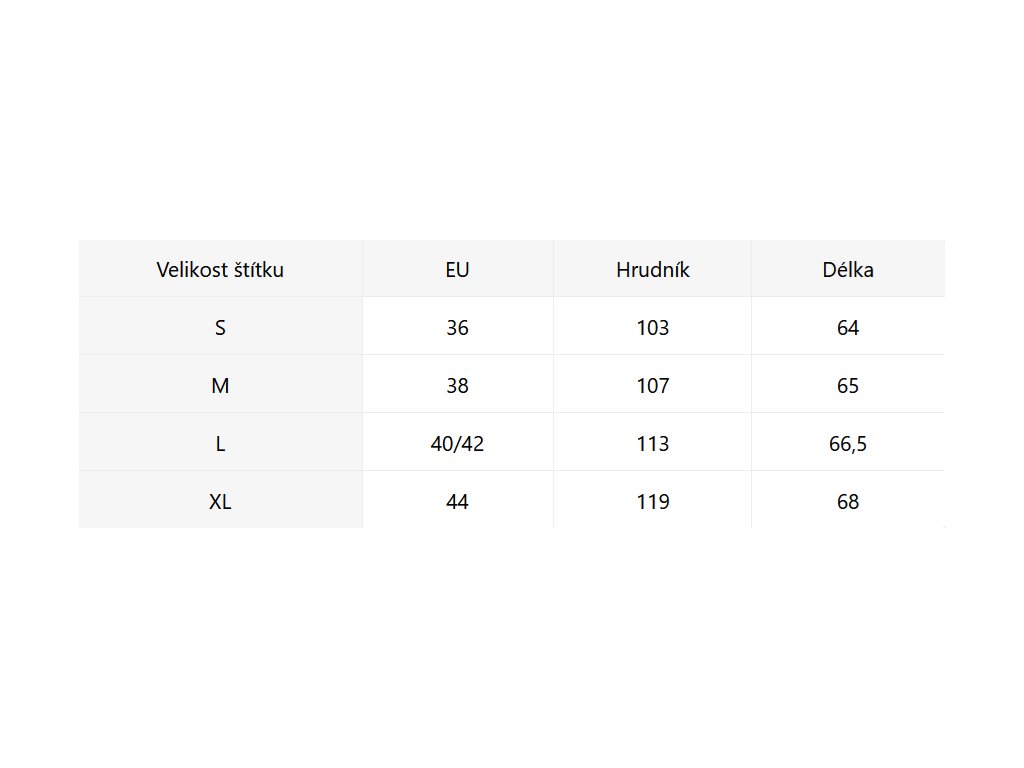 - Velikostní tabulka u fotek produktu