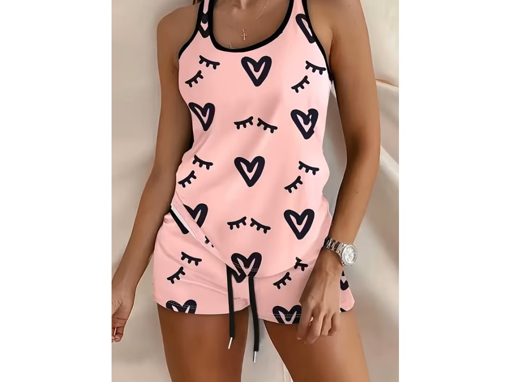 Dámské letní pyžamo se srdíčky