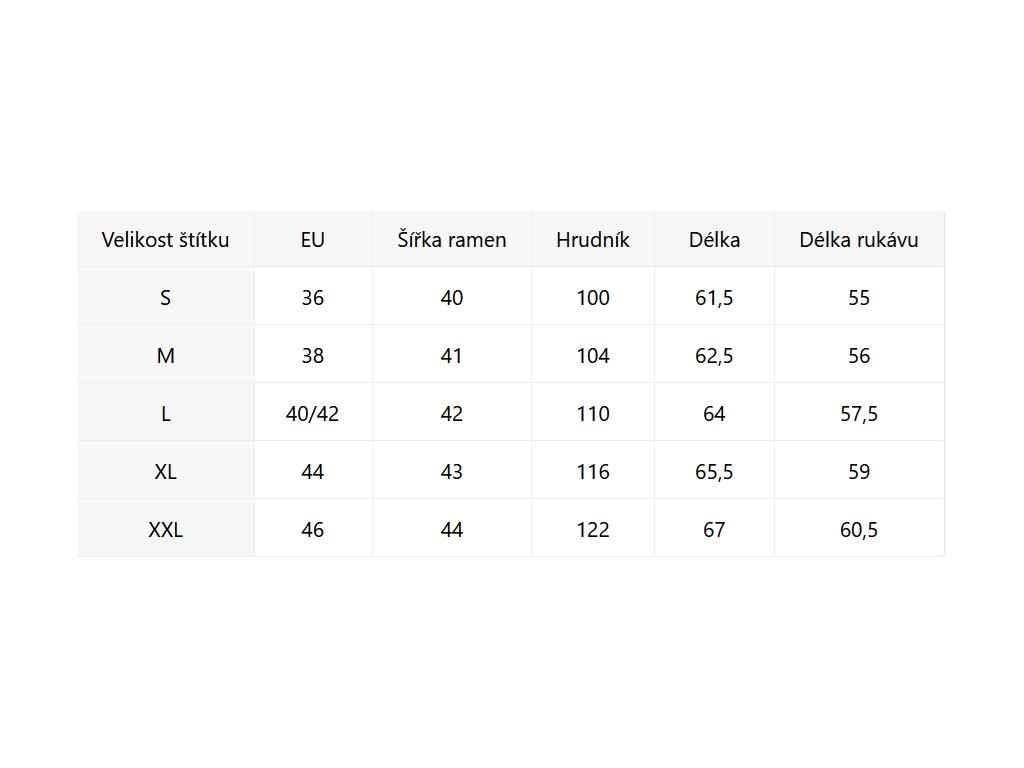 - Velikostní tabulka u fotek produktu