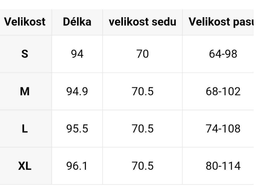 - Velikostní tabulka u fotek produktu