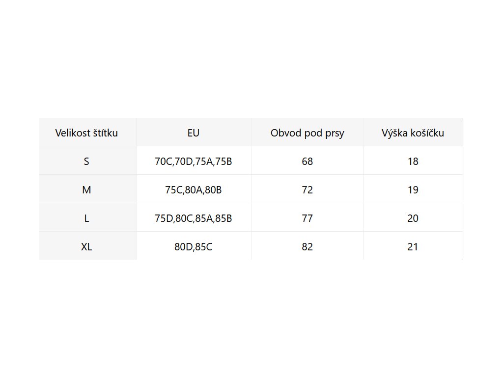 - Velikostní tabulka u fotek produktu