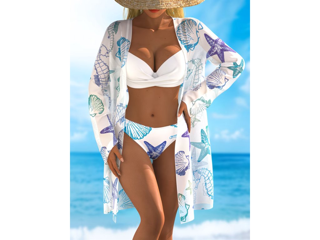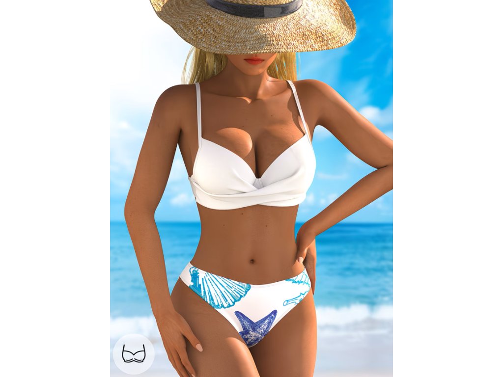 Dámské dvoudílné bílé plavky s mušlovým vzorem