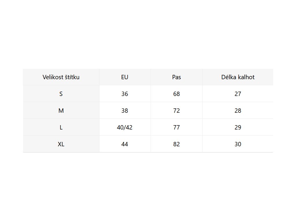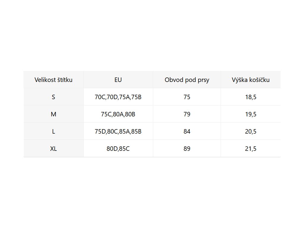 - Velikostní tabulka u fotek produktu