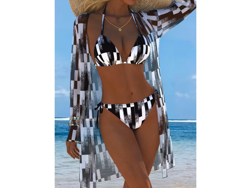 Dámské dvoudílné bílo-černé plavky s přehozem