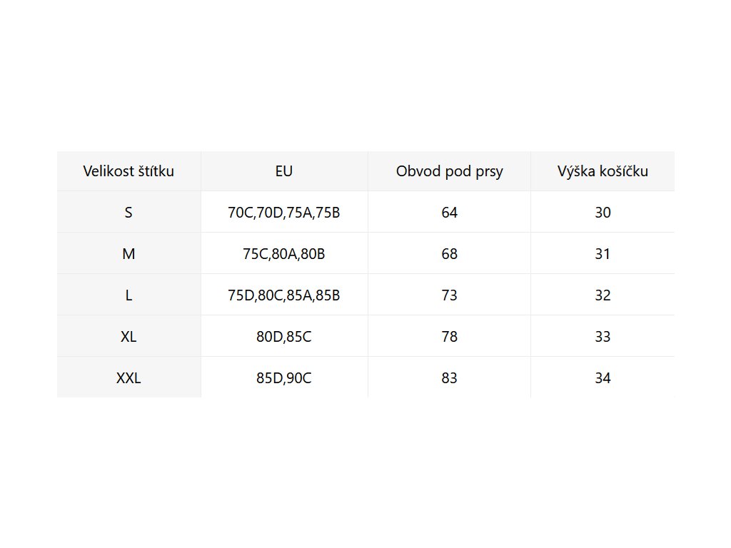 - Velikostní tabulka u fotek produktu