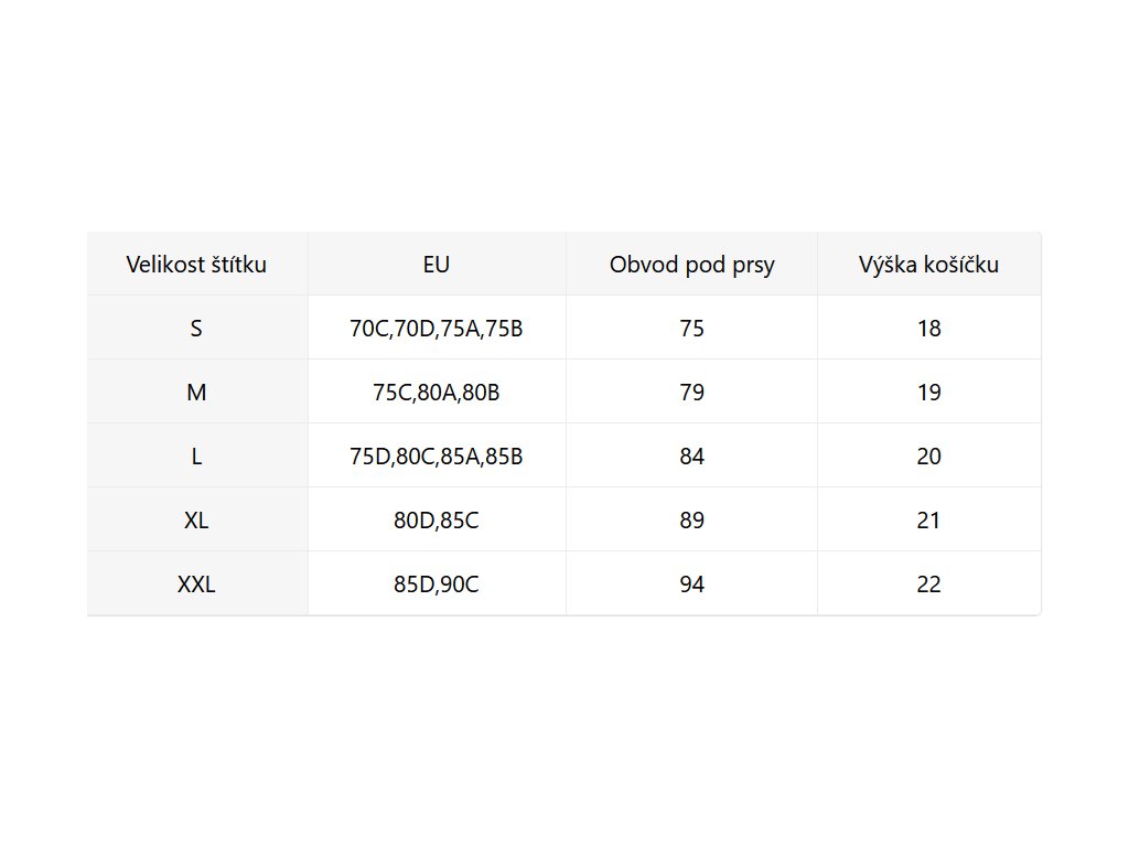 - Velikostní tabulka u fotek produktu