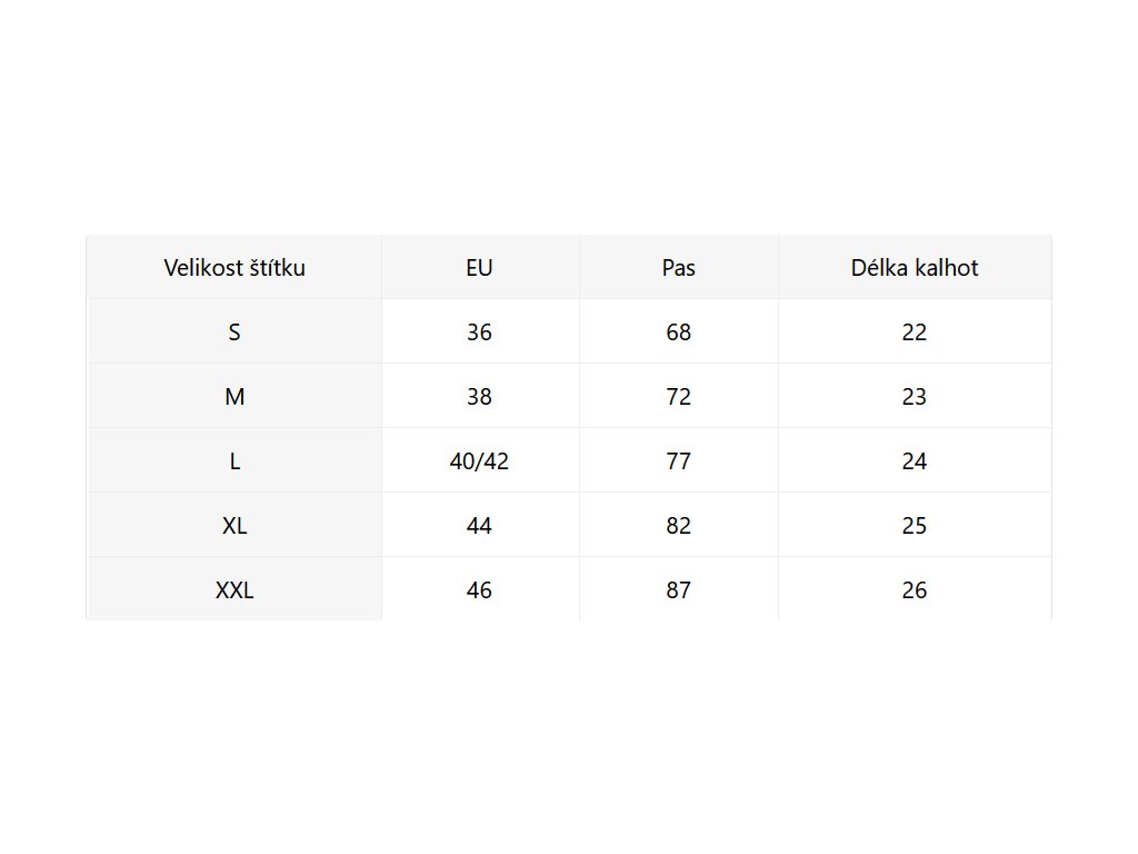 - Velikostní tabulka u fotek produktu