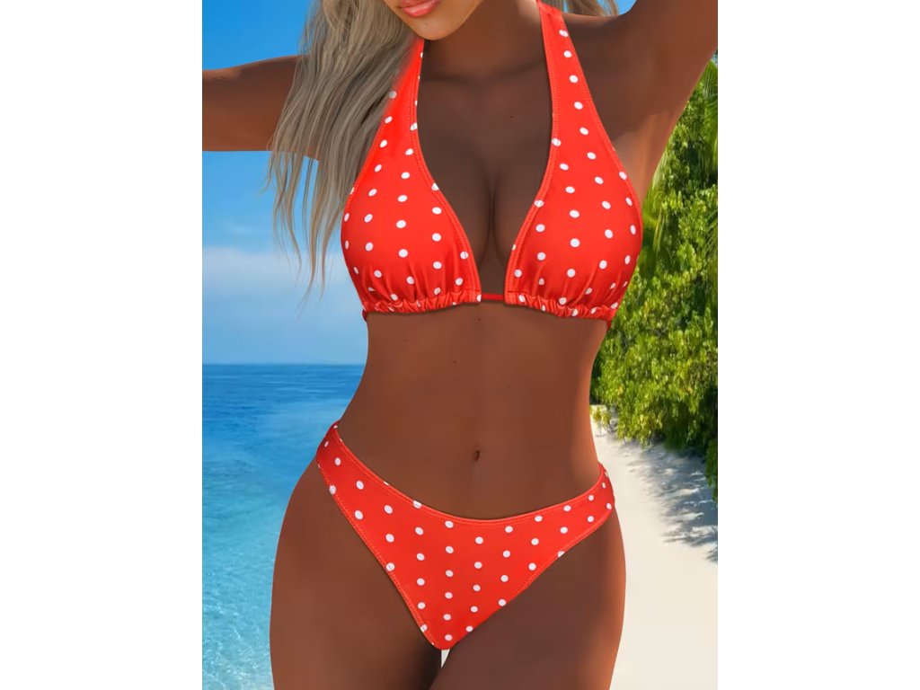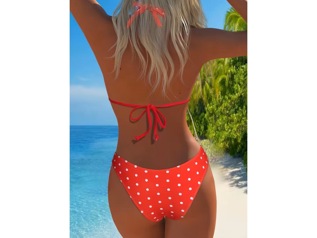 Dámské dvoudílné červené plavky s puntíky