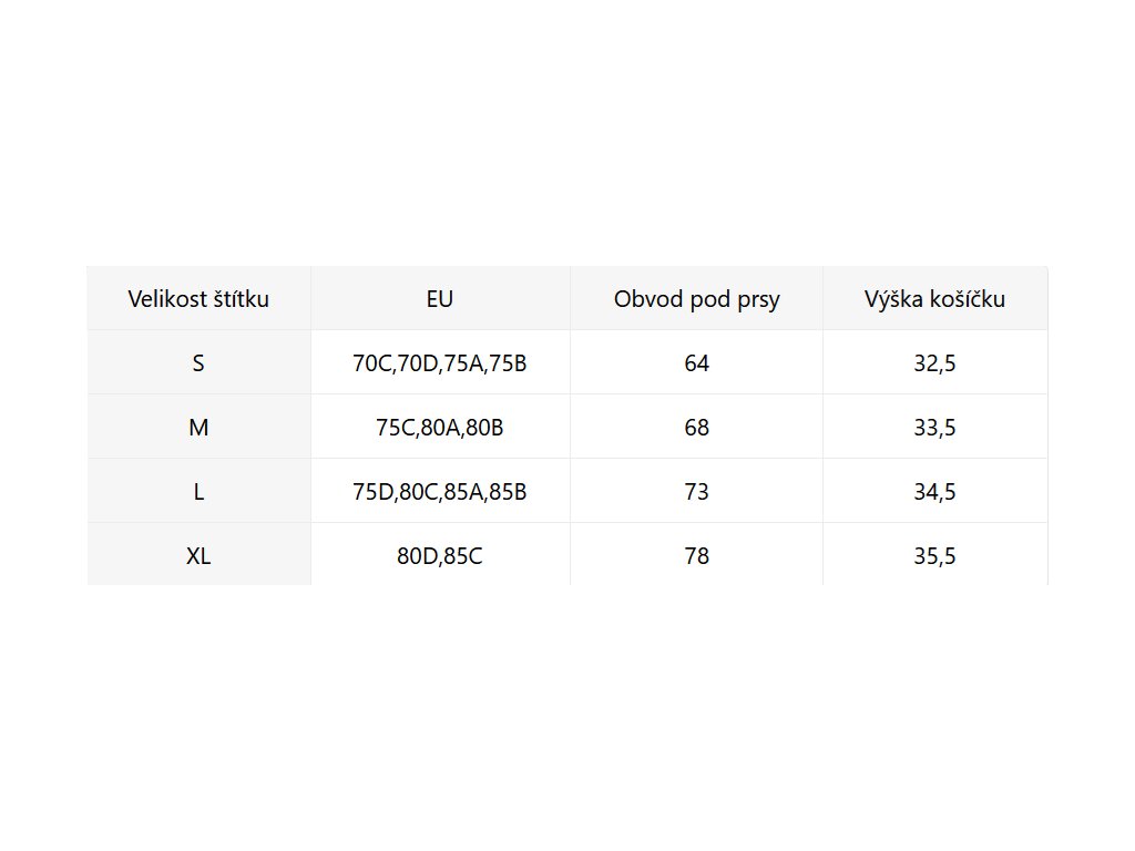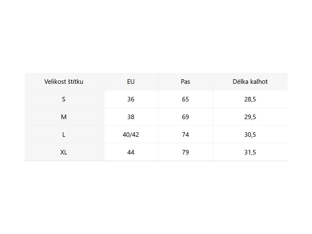 - Velikostní tabulka u fotek produktu