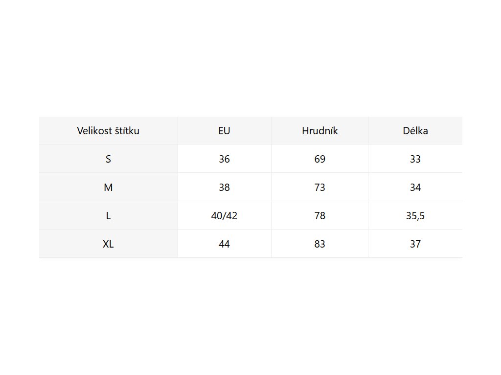 - Velikostní tabulka u fotek produktu