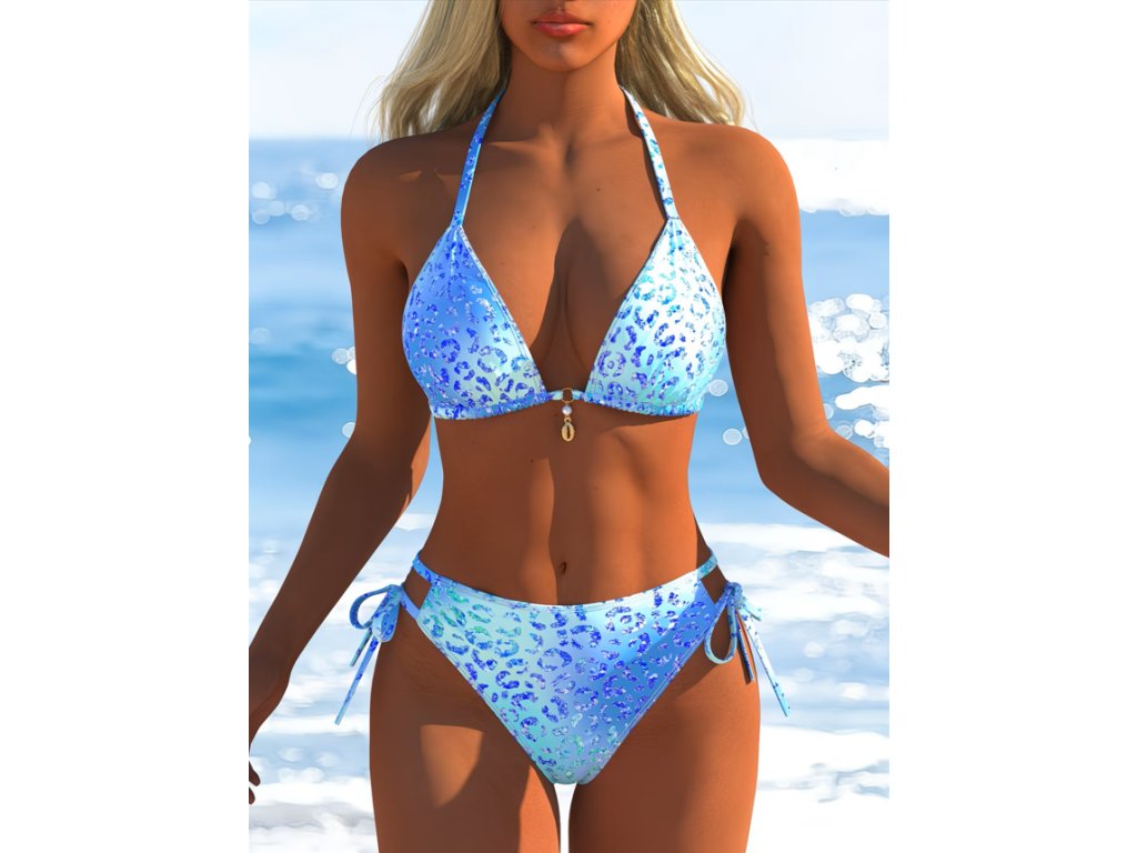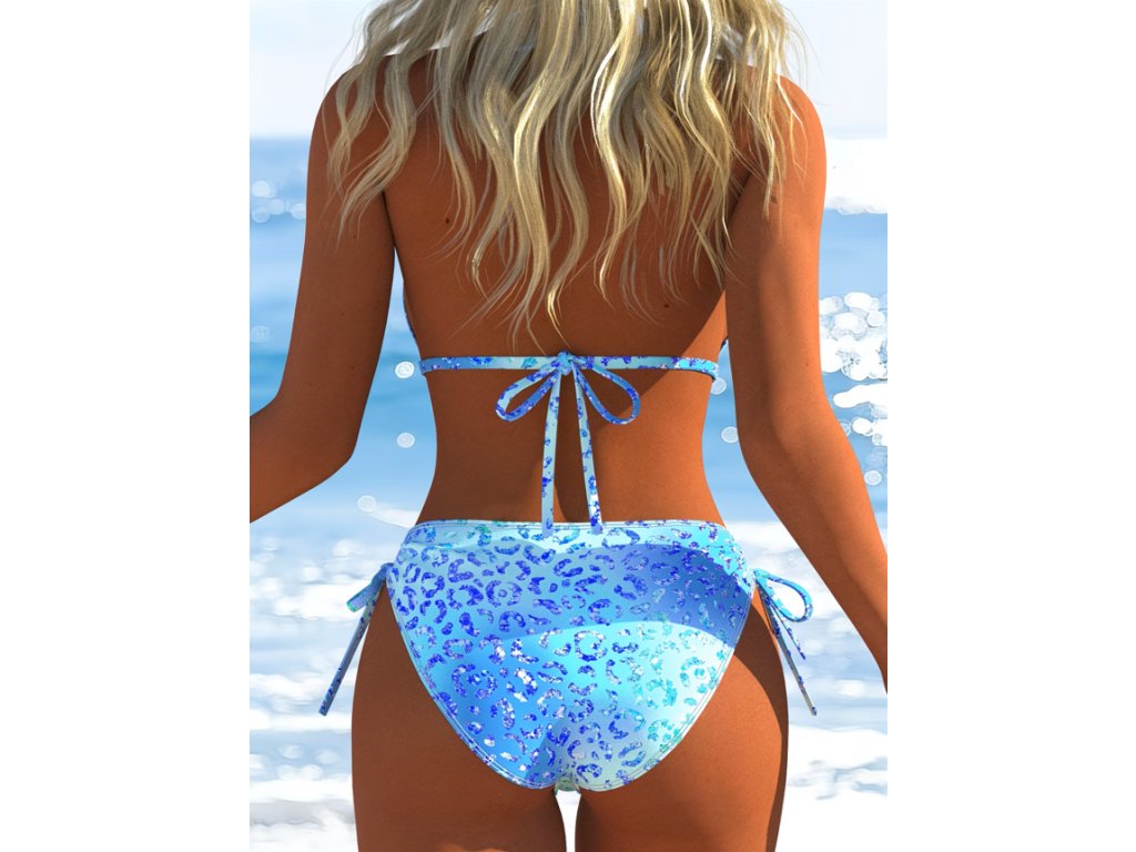 Dámské dvoudílné modré plavky s leopardím vzorem