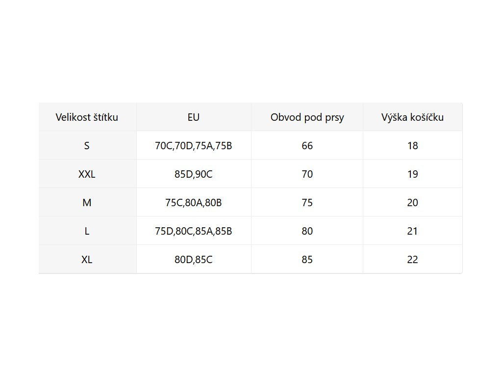 - Velikostní tabulka u fotek produktu