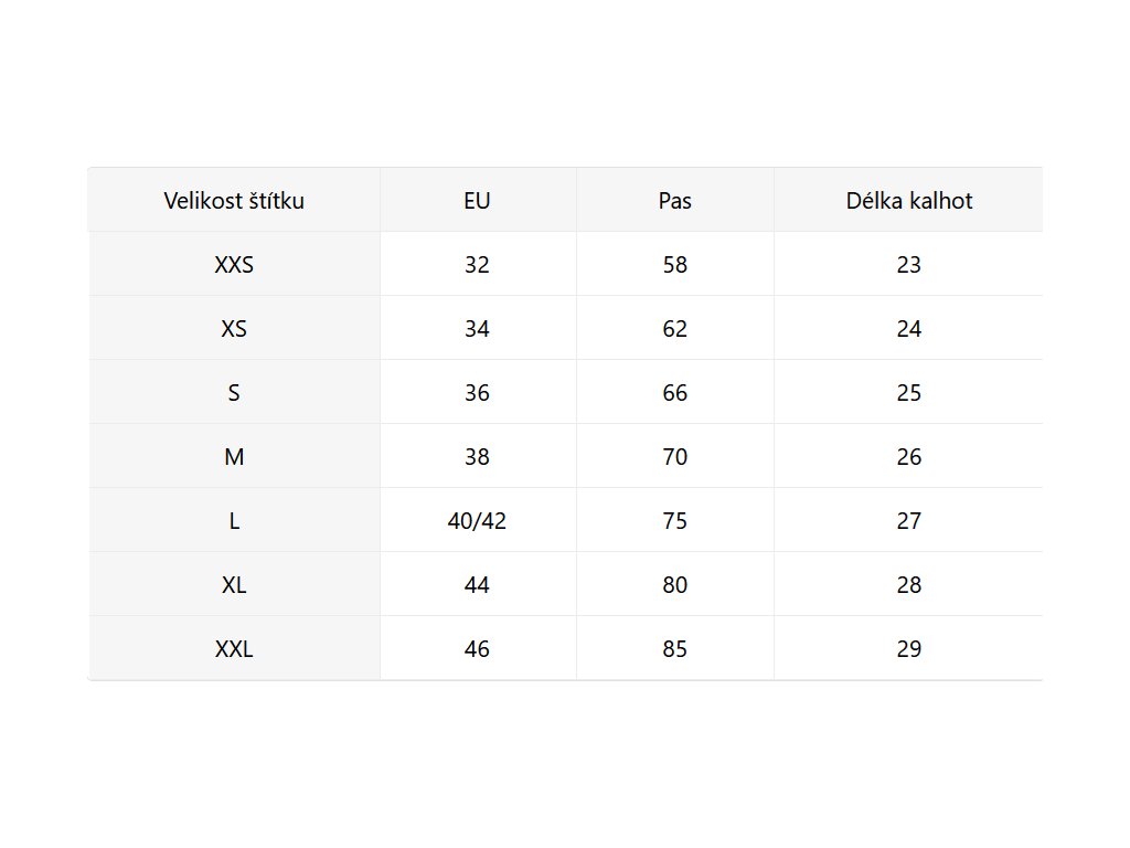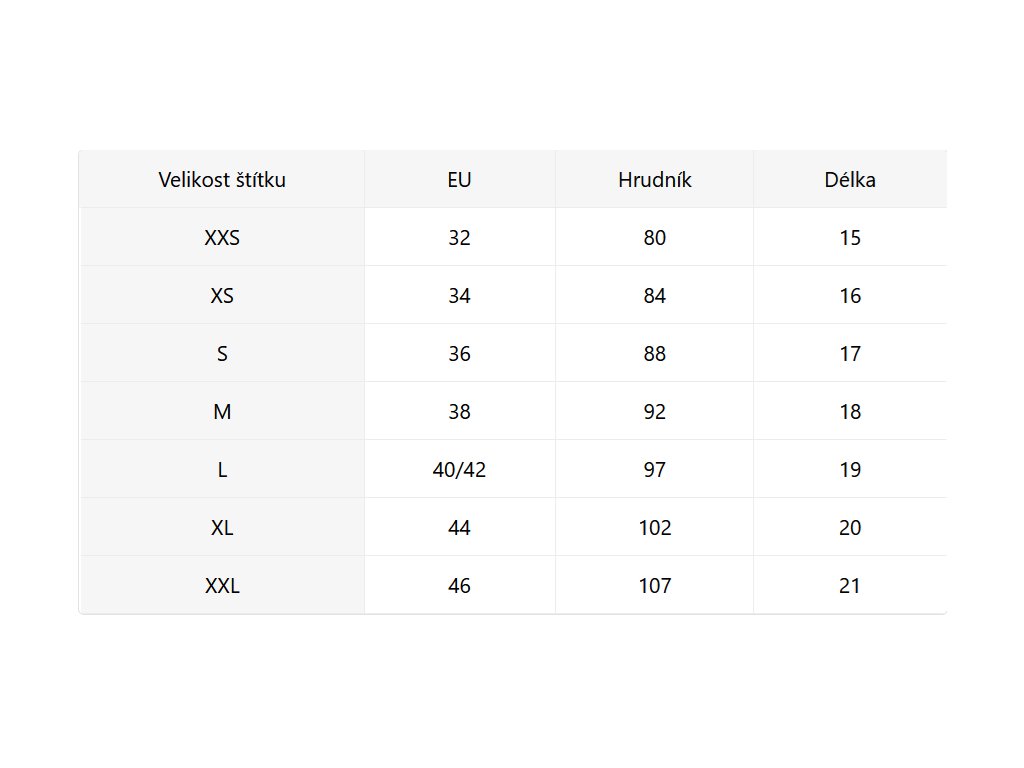 - Velikostní tabulka u fotek produktu
