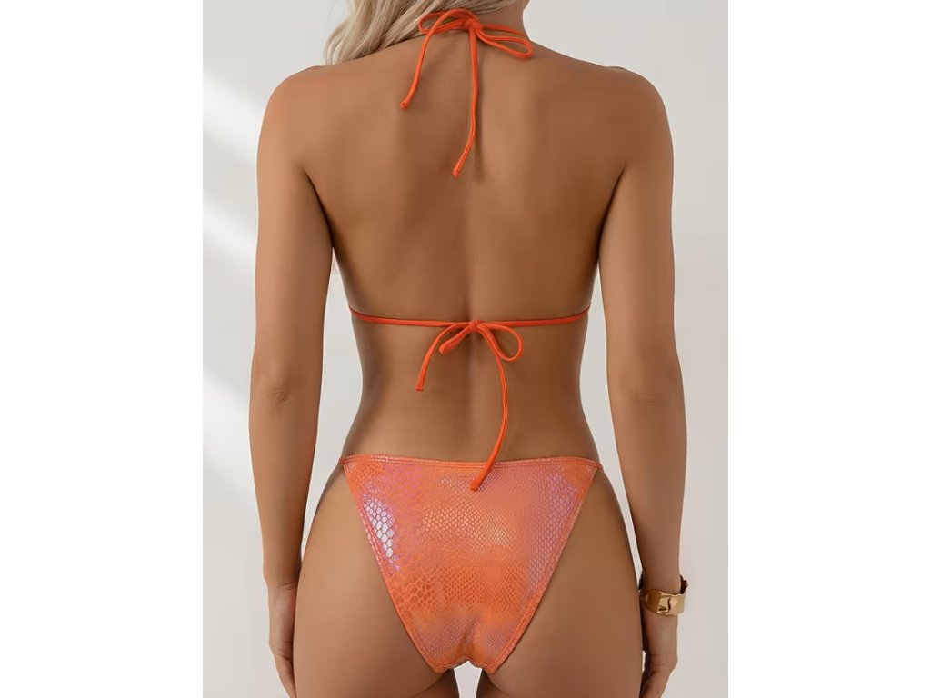 Dámské dvoudílné oranžové plavky s hadím potiskem