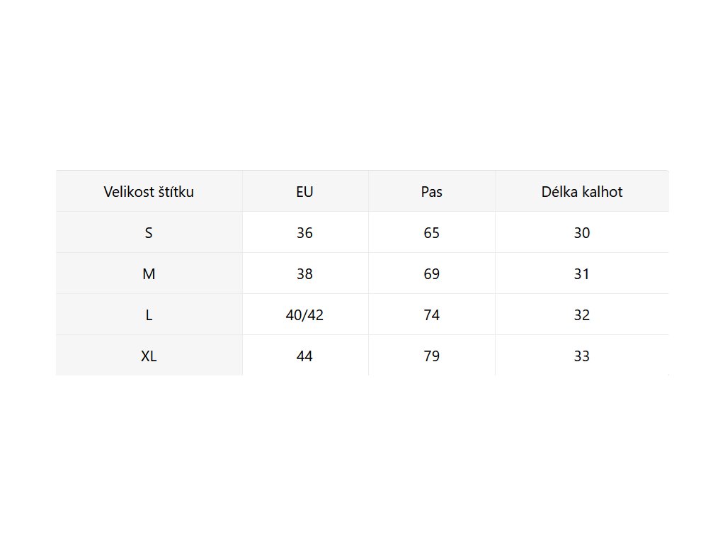 - Velikostní tabulka u fotek produktu