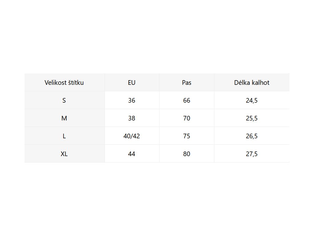 • Velikostní tabulka u fotek produktu