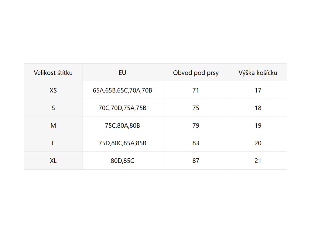 - Velikostní tabulka u fotek produktu