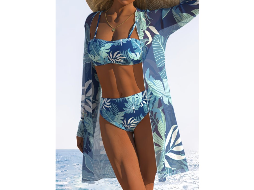 Dámské modré dvoudílné plavky s přehozem