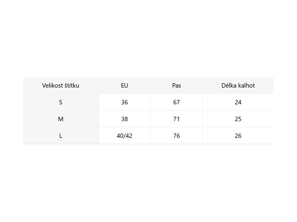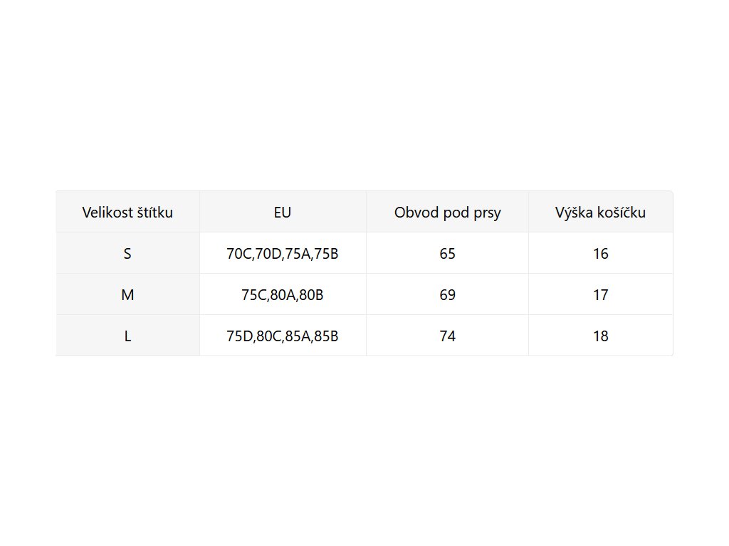 - Velikostní tabulka u fotek produktu