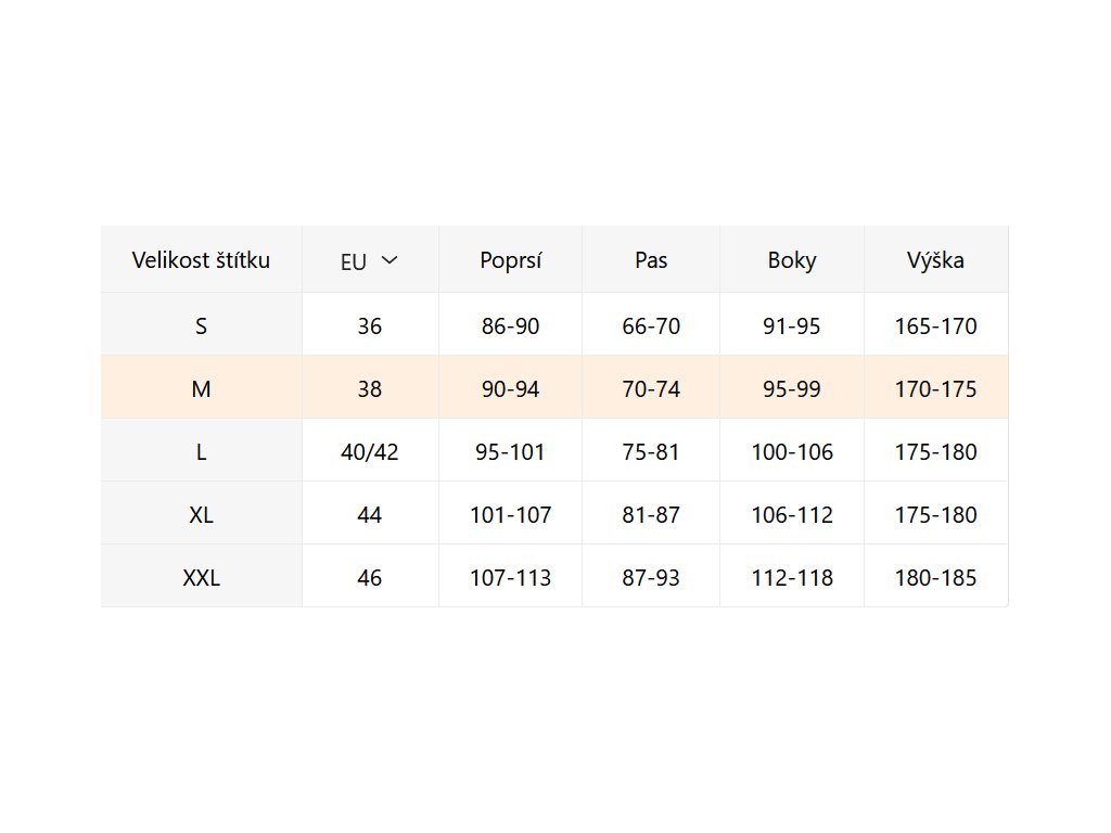 - Velikostní tabulka u fotek produktu