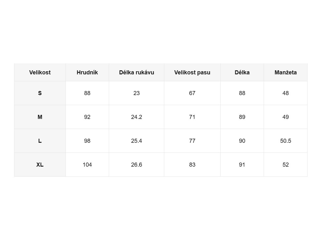 - Velikostní tabulka u fotek produktu
