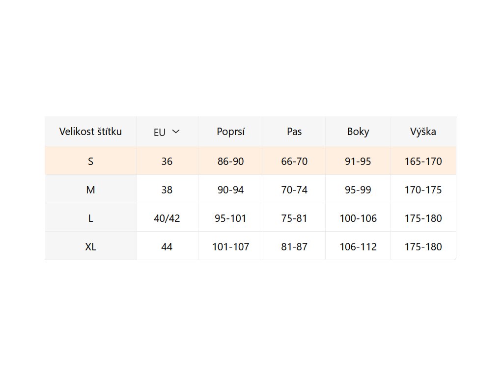 - Velikostní tabulka u fotek produktu
