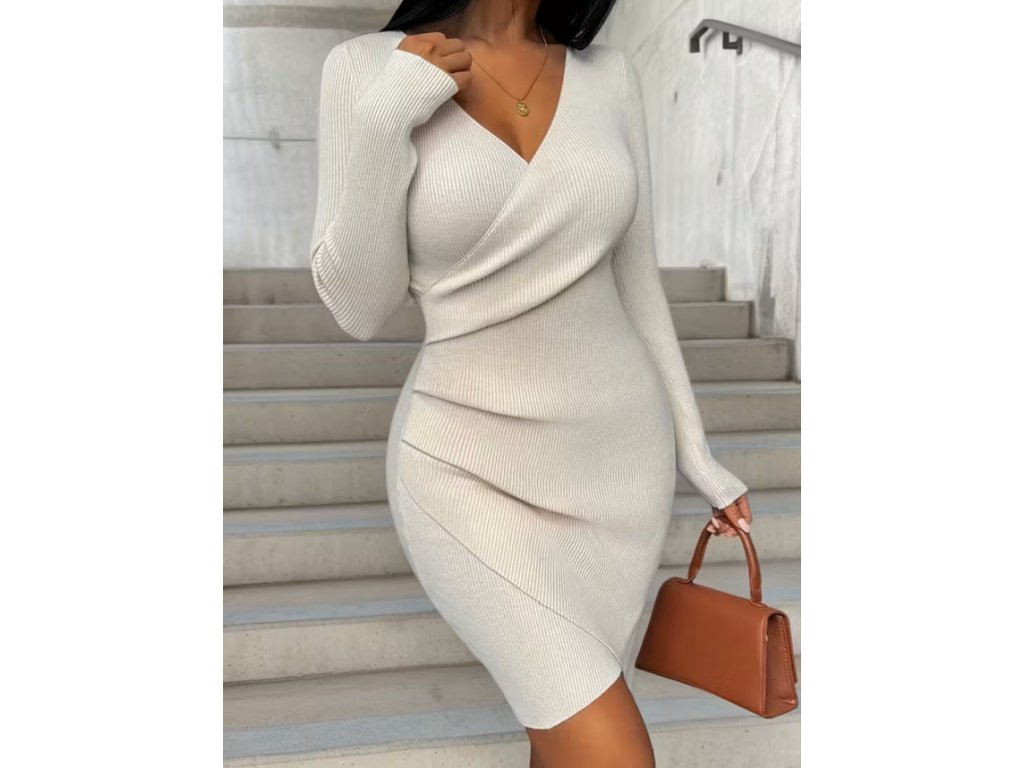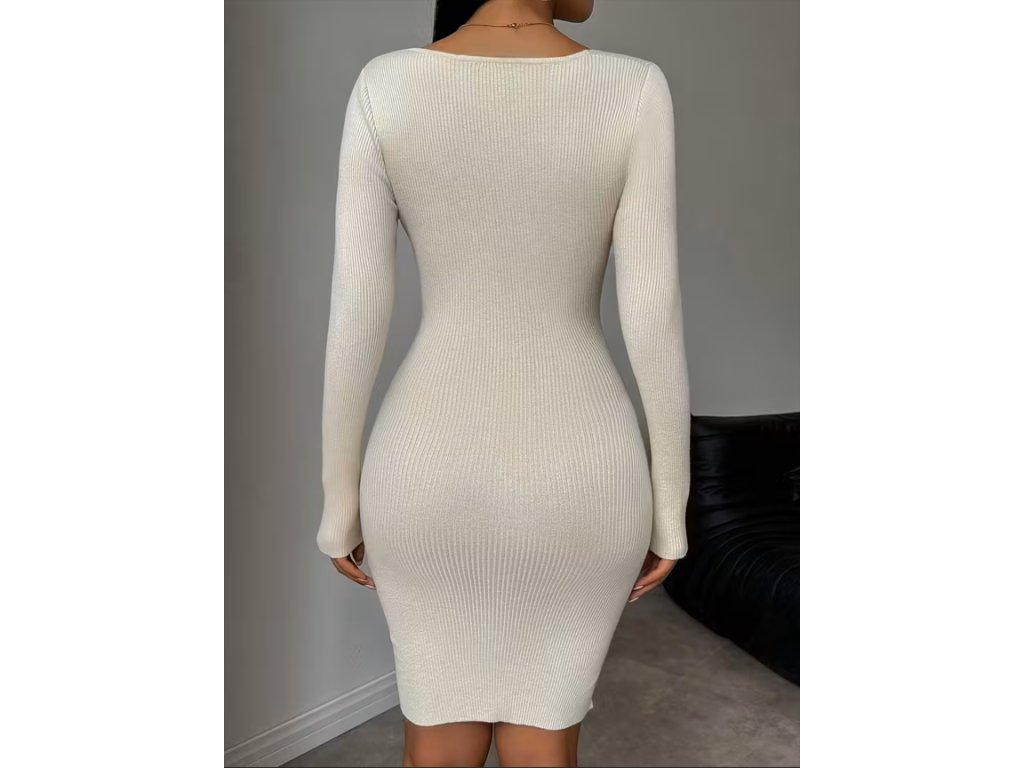 Pletené smetanové šaty s výstřihem
