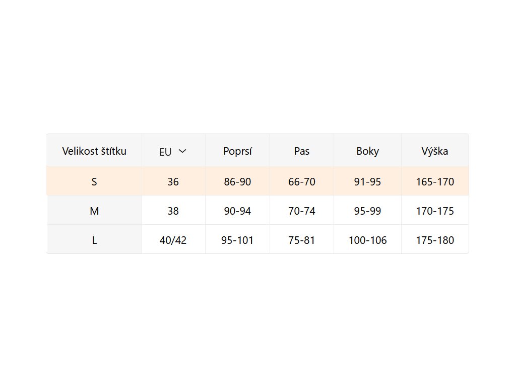 - Velikostní tabulka u fotek produktu