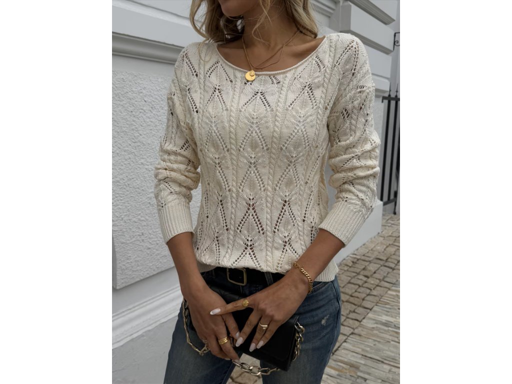 Dámský béžový svetr s lodičkovým výstřihem