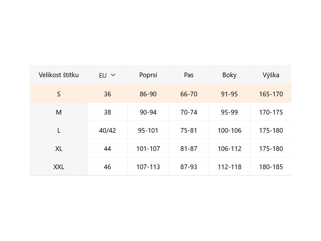 - Velikostní tabulka u fotek produktu