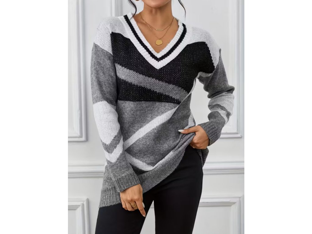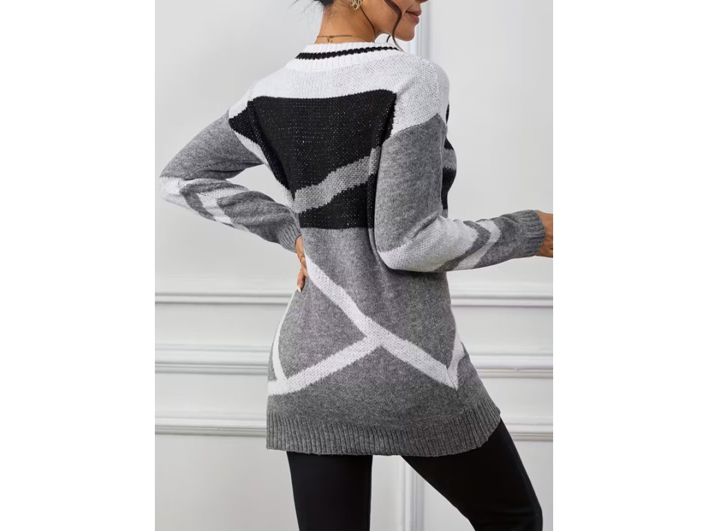 Dámský dlouhý šedý svetr s výstřihem