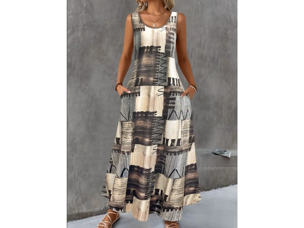 Dámské dlouhé hnědé letní šaty s kapsami