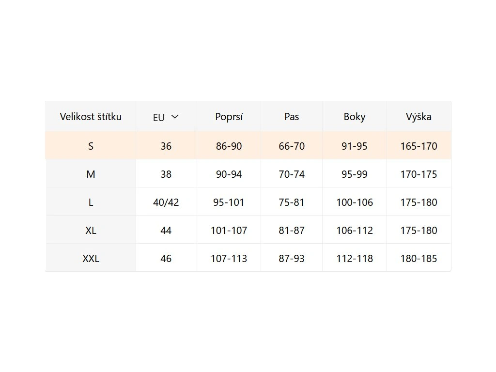 - Velikostní tabulka u fotek produktu