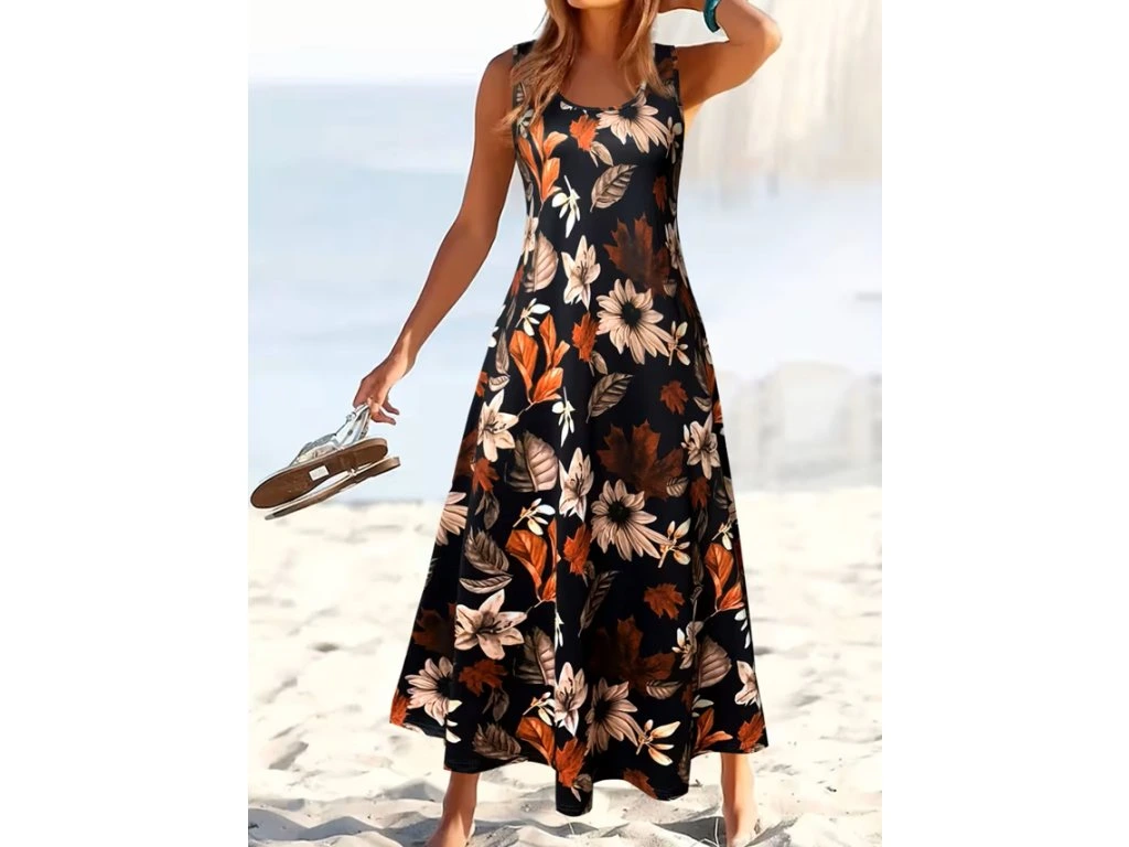 Dlouhé letní hnědé šaty s květinovým vzorem