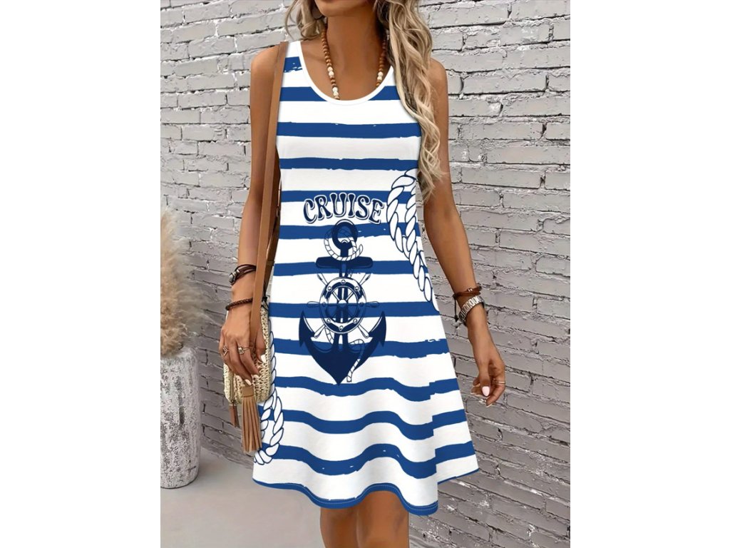 Dámské krátké letní pruhované šaty s kotvou