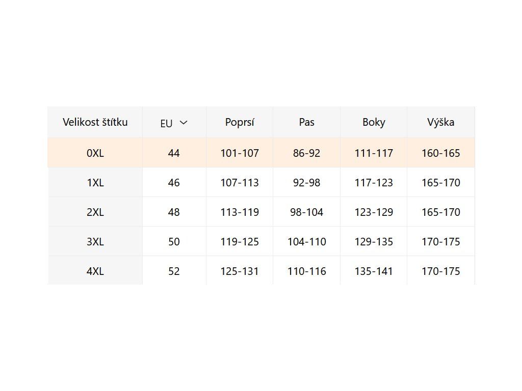 - Velikostní tabulka u fotek produktu