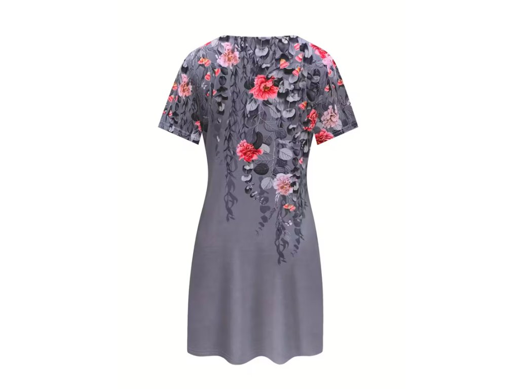 Dámské šedé letní šaty s květinovým vzorem