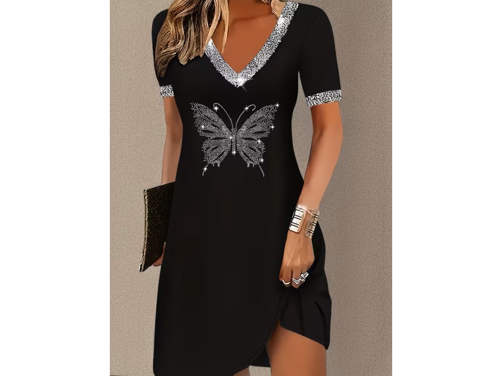 Krátké černé šaty s motýlem