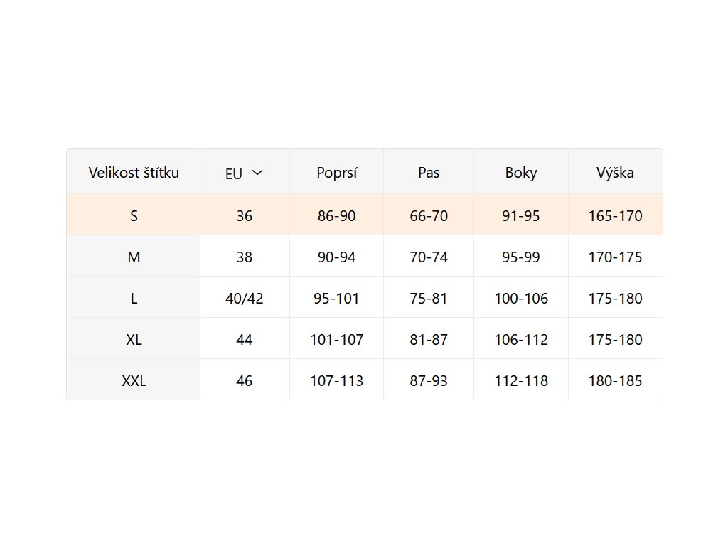- Velikostní tabulka u fotek produktu