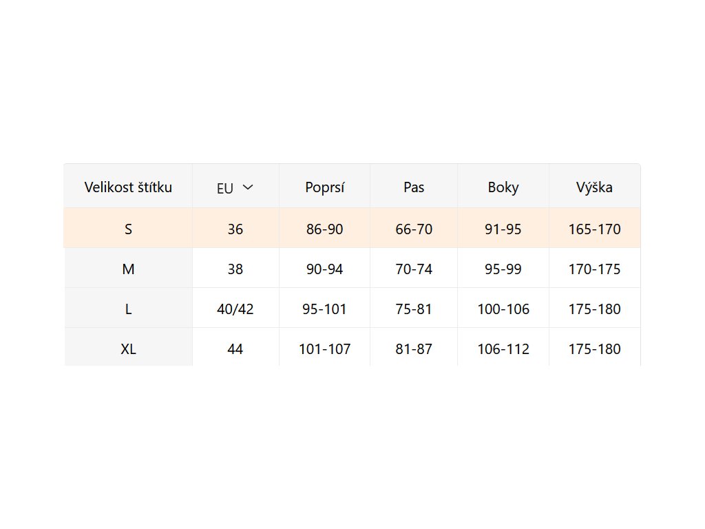 - Velikostní tabulka u fotek produktu