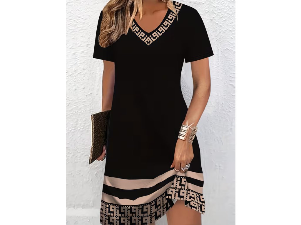 Letní krátké černé šaty s potiskem