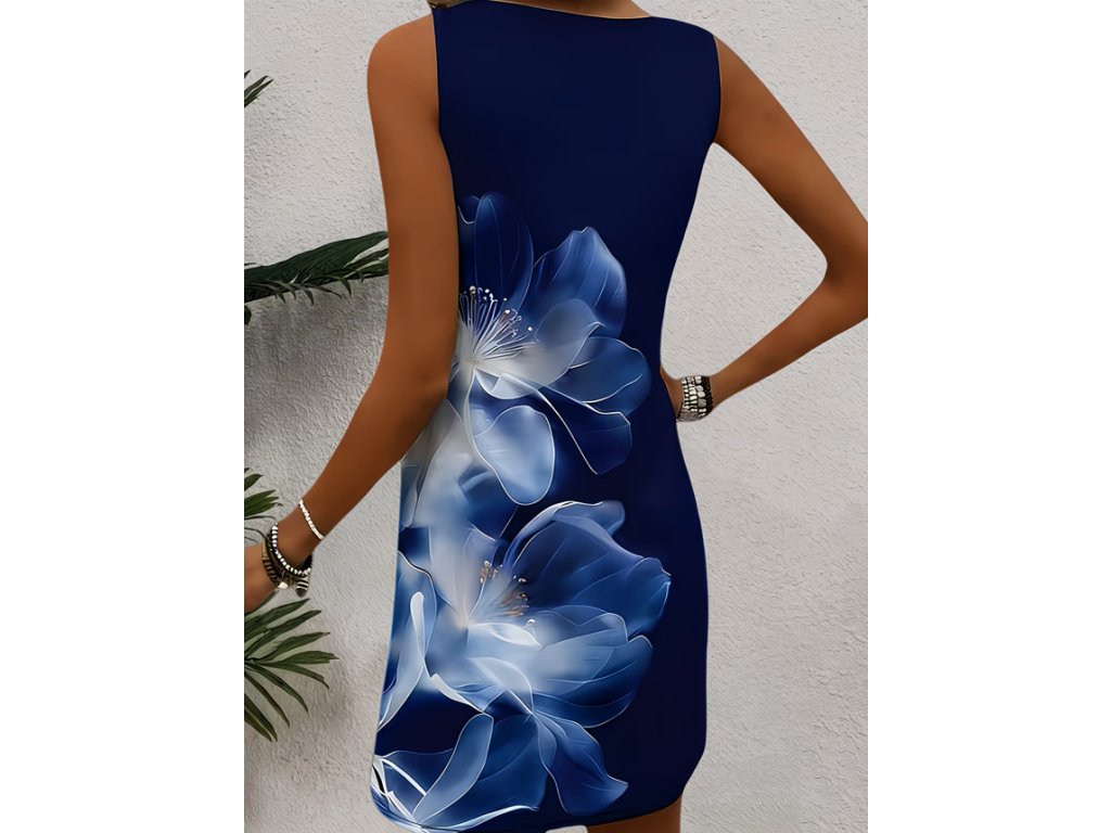 Letní šaty s hlubokou modrou a jemným květinovým potiskem